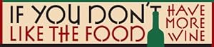Access the most advanced RSS tools and use them to your advantage. | 2013-04-04 11:56:51.462554-04 Category: Home & Kitchen Vendor: Lovingly printed on a manufactured wood substrate. 16" x 3 1/2" x 1/2" Decorative sign/plaque is ready to hang above a door fra  Product DescriptionIf you don't like the food ... have more wine. Humorous, decorative wall/door plaque. This is the kind of wisdom you'll want to display somewhere ... your office, the kitchen corner, or the family room. Ready to hang and incite laughter. Find out more |